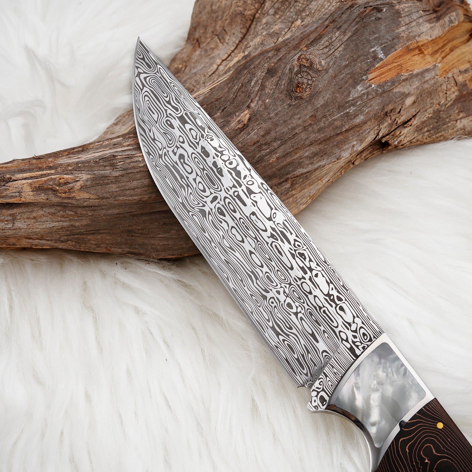 Hot Tags: Hunting Knife in Powder Damasteel, Fixed Blade, Fixed Blade Hunter Damasteel Blade Carbon Fiber Pearl Inlay, Customized, custom, oem, bulk, manufacturing company, manufacturers, factory, suppliers, in stock