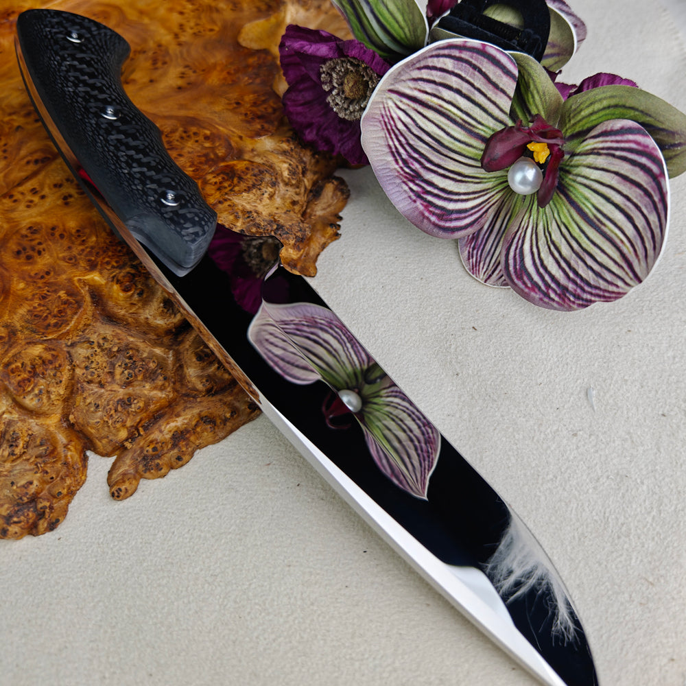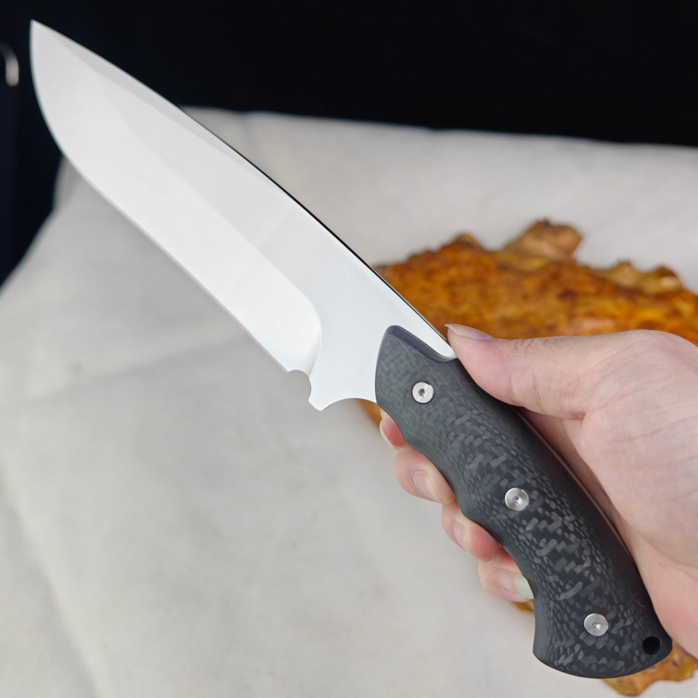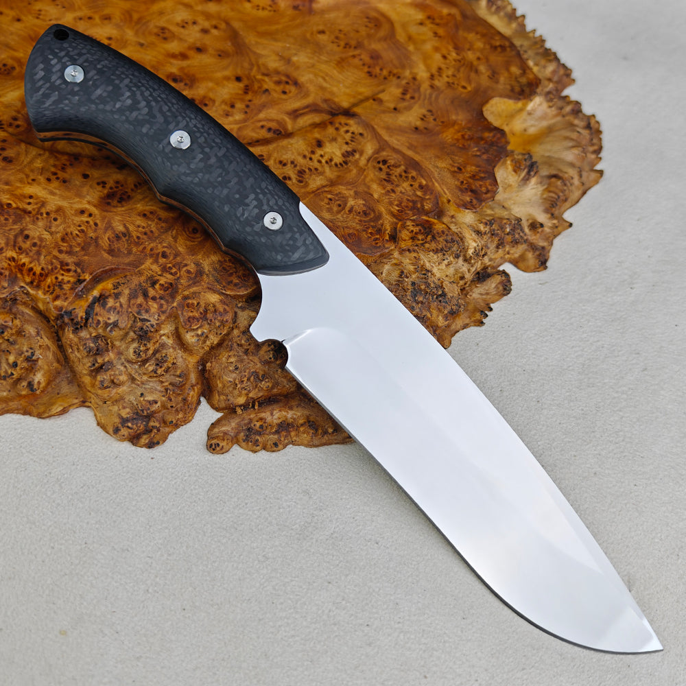 Mirror Polished Vanax Steel Fixed Blade Knife 6.7" Carbon Fiber