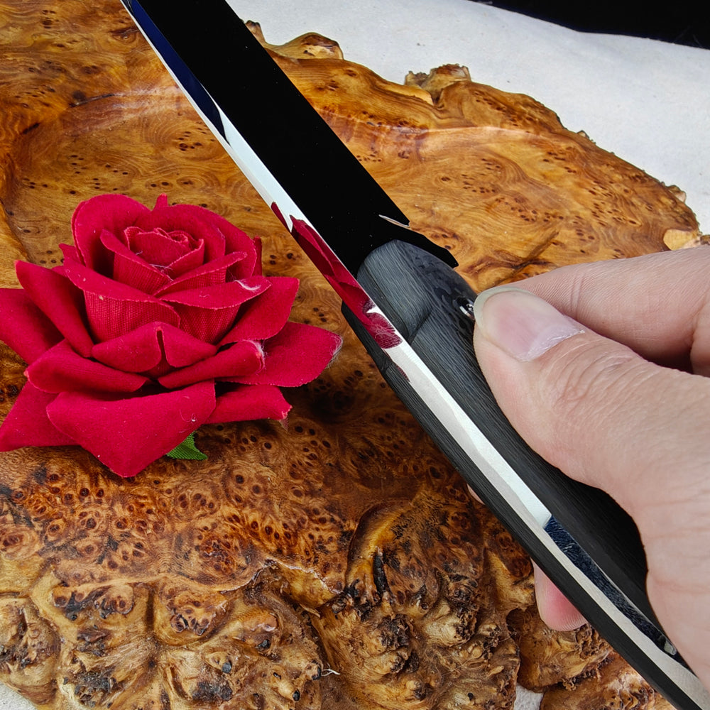 Bilizuo Mirror Polished Vanax Steel Fixed Blade Knife is a must-have for any outdoor enthusiast. Crafted from Vanax Steel, it boasts excellent corrosion resistance and edge retention. The mirror polished finish adds a touch of elegance, while the carbon fiber handle provides a comfortable grip. With a blade length of 6.7 inches, it is perfect for large-scale tasks such as cutting, chopping, and splitting. Prepare to tackle any outdoor challenge with ease.