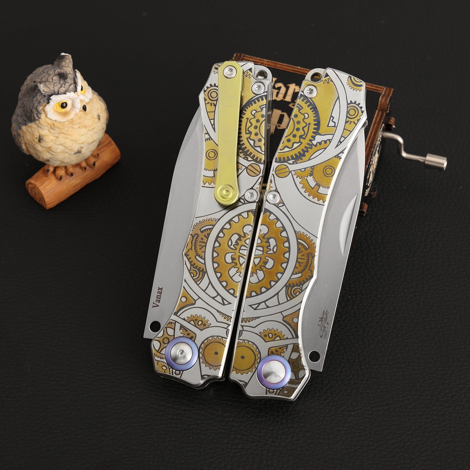 Drop Point Slip Joint Knife Vanax Steel 3.7 Inch Titanium